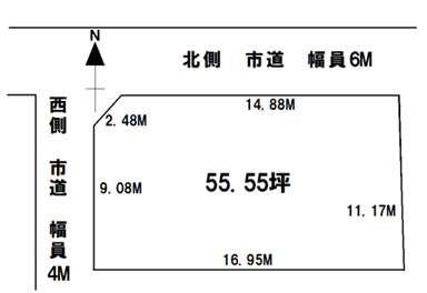 スーパーなど徒歩圏内の閑静な住宅街。北西角地の平坦な整形地。